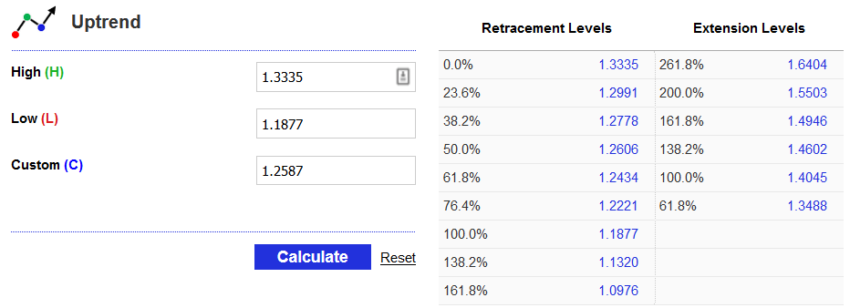 The ForexChurch Fibonacci Calculator lets you calculate both Fibonacci retracement and extension levels. While charting software will include some kind of Fibonacci tool, using the ForexChurch Fibonacci Calculator will help you accurately pinpoint each Fibonacci level. Since there is a certain margin of error in using graphical overlays to plot Fibonacci levels on a chart, using the web-based calculator will certainly provide more accuracy. Moreover, it will help you draw manual horizontal Fibonacci levels – only the levels you need instead of cluttering the chart with all the built-in Fibonacci levels.