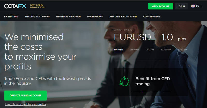 One of the unique features of OctaFX is that all three accounts, including the ECN account, charge no commissions to traders and fees include only spreads.