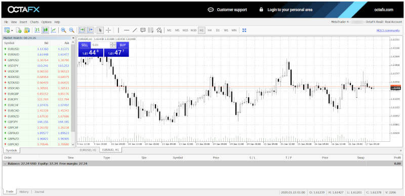 Both MetaTrader 4 & 5 as well as the cTrader platform from OctaFX come with web trading versions that allow traders to log in to their account using a simple web browser. We found the cTrader web trader to be superior compared to the MetaTrader web trader. In fact, compared to cTrader, the web trader of MetaTrader is rather basic.